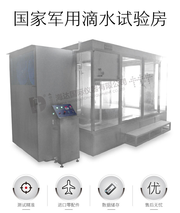 滴水試驗(yàn)房適用于考核電工產(chǎn)品,外殼和密封在淋雨環(huán)境下能否保證設(shè)備和元件良好性能的試驗(yàn)。本產(chǎn)品采用科學(xué)設(shè)計(jì),使得該設(shè)備能夠逼真的模擬滴水環(huán)境。 設(shè)計(jì)標(biāo)準(zhǔn):IP GJB150.8A-2009 標(biāo)準(zhǔn)之程序III | ||