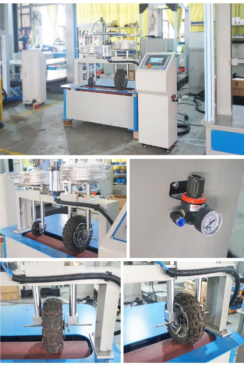 滑板車輪子耐磨測(cè)試機(jī)適用于小型輪子的耐磨試驗(yàn),如旅行箱、滑冰鞋、童車、手推車的輪子??蓽y(cè)得輪子材料的耐磨性及整體結(jié)構(gòu)有無磨損及變形,試驗(yàn)的結(jié)果可供作改進(jìn)的參考。 測(cè)試方法:置模型嬰兒于車臺(tái)中,將車臺(tái)固定于測(cè)試臺(tái)上,調(diào)整輸送帶速度1.4±0.1m/sec(5kw/h±3.6 kw/h)。持續(xù)測(cè)試64小時(shí)后,目視車臺(tái)有無損壞。達(dá)設(shè)定次數(shù)能自動(dòng)停止操作。試驗(yàn)速度:可調(diào)LED顯示 時(shí)間設(shè)定:9999 分鐘負(fù)荷:重量(約):約95kg 設(shè)計(jì)標(biāo)準(zhǔn):滿足QB/T 2917-2007 |